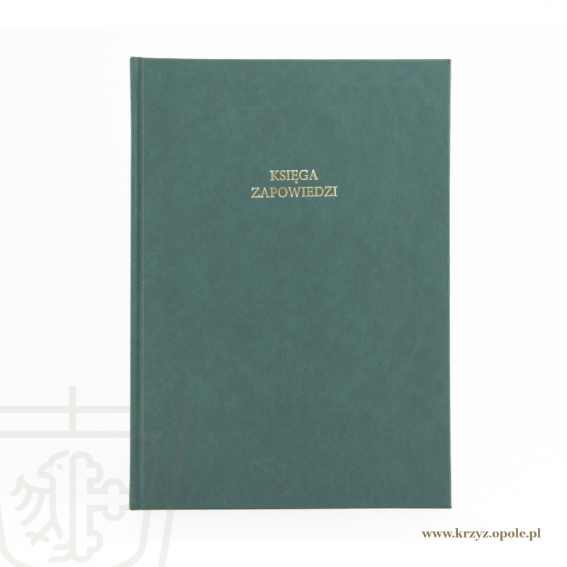 Księga parafialna w twardej oprawie w modnym zielonym odcieniu ze złotym tłoczeniem na okładce i grzbiecie. Pozycja posiada przejrzysty rozkład rubryk, których wielkości zostały dostosowane do wygodnego wypełniania piórem. Tabele zawierają dane personalne narzeczonych, daty trzech zapowiedzi oraz uwagi.